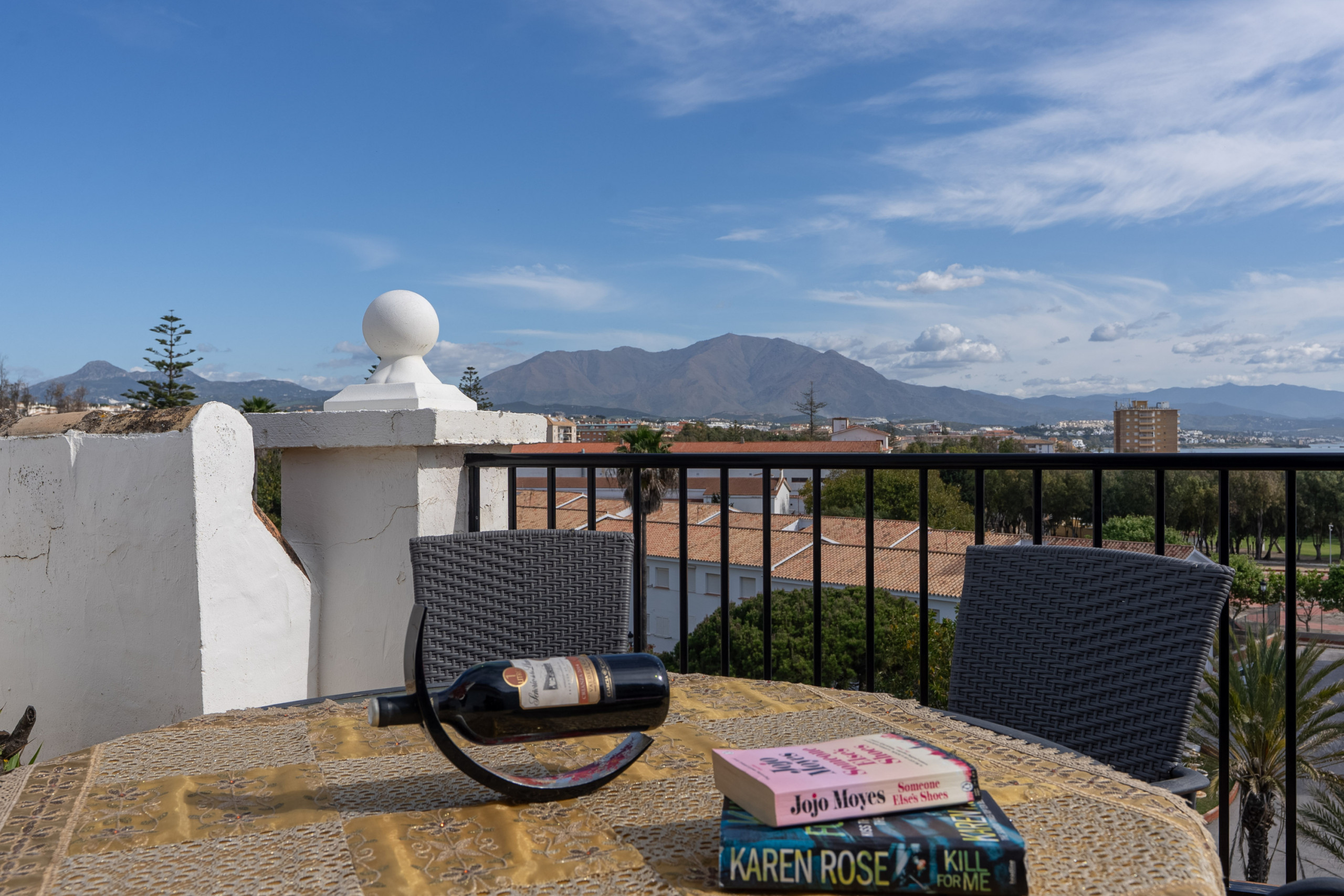 Réveillez-vous au son des vagues de l'océan dans un penthouse de luxe en front de mer, à seulement 50 pas de la mer. Entrée sécurisée, sécurité, parking et ascenseur direct. 4 piscines, salle de sport, tennis, bibliothèque et marina avec bateaux, jet-skis et restauration en bord de mer. Deux suites principales. Terrasse de 20 m² avec vue océan-montagne, guitare espagnole et notre collection de livres, magazines et DVD. Capacité de 7 adultes + lit bébé.
